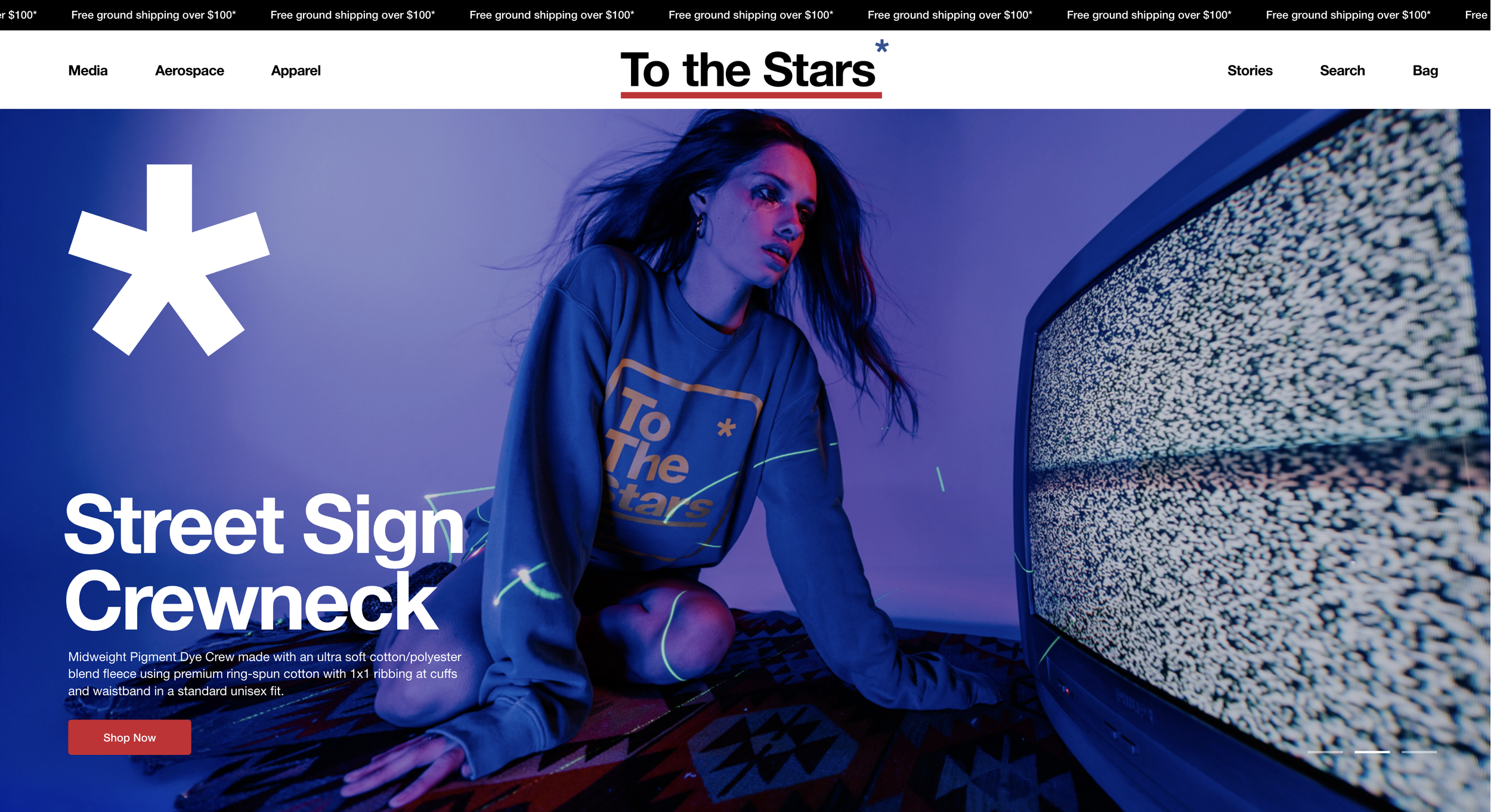 To The Stars* is a San Diego-based company co-founded by Tom DeLonge. I was hired by this award-winning entertainment company and streetwear brand to re-design their e-commerce website, on Shopify’s platform. I adhered to the original vision of the brand design, which combines crisp modern aesthetic with a nod to NASA branding from the 1960s, updating the TTS* digital experience with a fresh new look.
